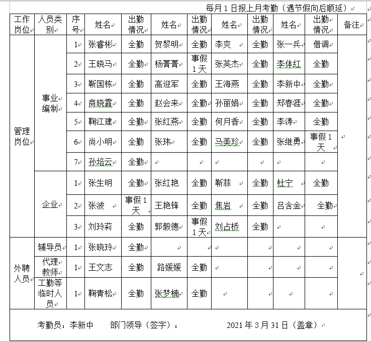 附件:3月考勤表.doc