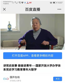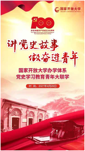 根据《国家开放大学关于开展纪念建党100周年学生主题教育系列活动的通知》相关安排,2021年4月29日,国家开放大学面向办学体系全体师生,在五四青年节前夕举办“讲党史故事、做奋进青年”办学体系党史学习教育青年大联学,我院认真组织,及时将通知和《国家开放大学学习网》网上的链接通过各班主任转发班级群,要求全体师生认真收看学习。学工党支部还将通知和活动链接重点推送到“21春开放教育党员群”,指导学生党员积极收看。