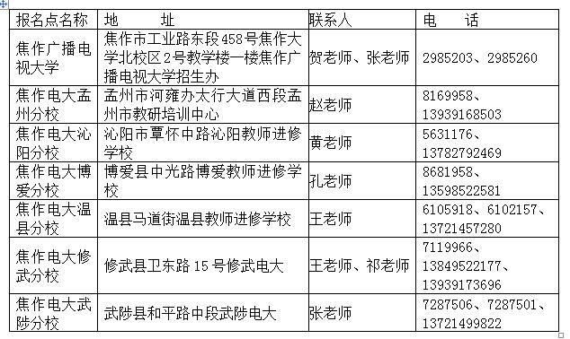 三、焦作市电大及各县级电大报名地址及联系电话: