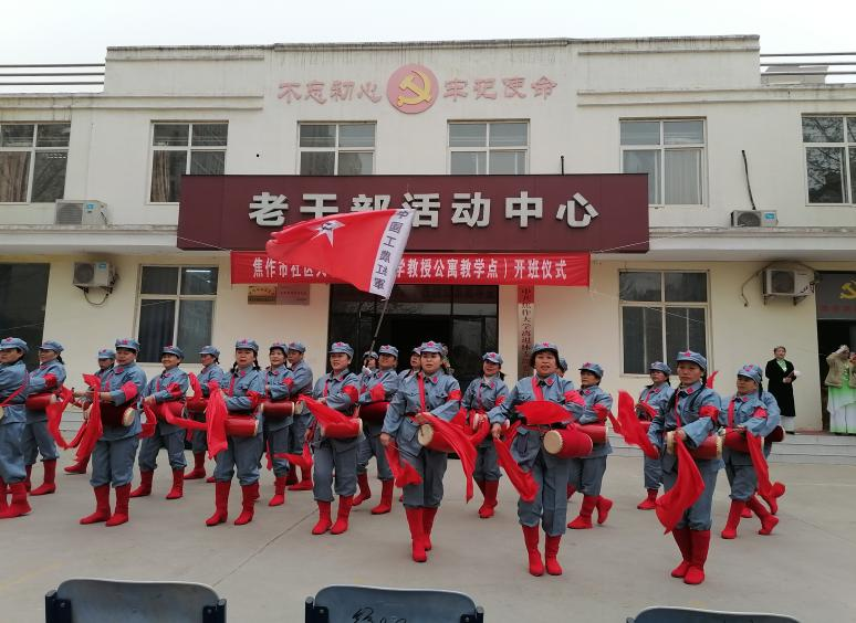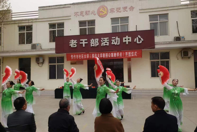开班仪式上,焦作市解放区老年大学学员进行了友情演出,表演了腰鼓-红色娘子军选段”、“舞蹈-双脚踏上幸福路”、“豫剧-朝阳沟选段”、“模特秀-盛世旗韵”等精彩的文艺节目。