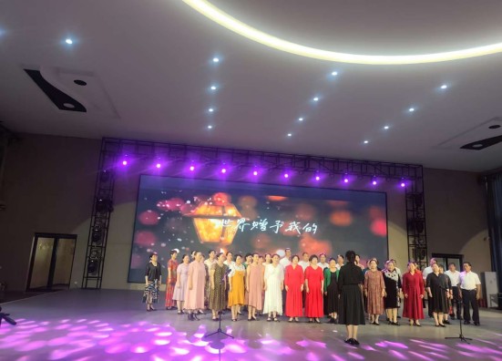 演出尾声,男女声二重唱《夕阳红》温情脉脉,唱出对美好生活的无限向往;大合唱《踏雪寻梅》与《世界赠予我的》以整齐嘹亮的歌声,将现场气氛推向高潮。学校领导上台与全体老年大学学员合影留念。