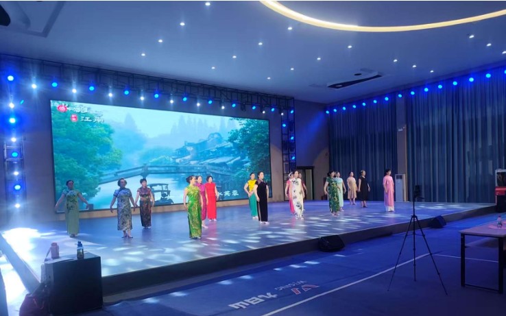 演出在刚柔并济的太极拳表演中拉开序幕,数十位学员身着素色练功服,动作行云流水、气定神闲,一招一式尽显中华传统武术的神韵,瞬间点燃全场气氛。女声独唱《祖国之恋》歌声悠扬深情,唱出对祖国的赤忱热爱;在《水韵江南》与《水墨中国》画卷中,模特班学员身着旗袍,步履优雅、仪态万千,将江南的温婉与水墨的意境展现得淋漓尽致。诗朗诵《读中国》声情并茂,字句铿锵,传递出对祖国深沉的赞美;舞蹈《梅花三弄》以古典舞韵诠释梅花高洁风骨,舞者身姿轻盈,衣袂翻飞间尽显东方美学。男声独唱《滚滚长江东逝水》豪迈激昂,歌声雄浑有力;葫芦丝联奏《小夜曲》《映山红》曲调悠扬,令人沉醉。